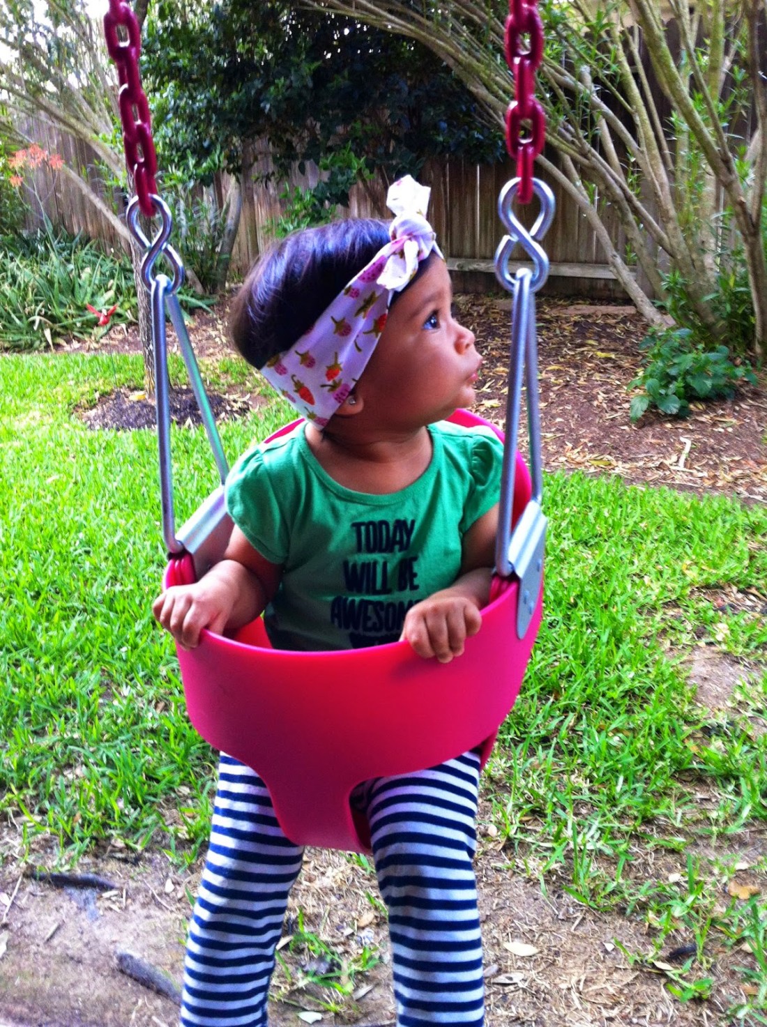 She is the cutest ever! I love the idea of swinging while grilling! How fun!