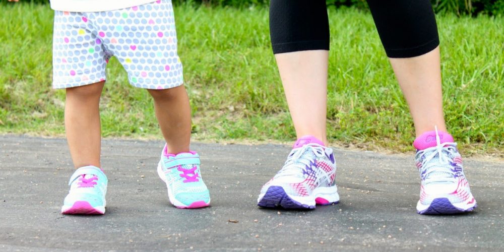 Charlotte is such a copy cat these days. I love running, and so does she. She loves to do what mommy does. That even means dressing the same. Being that I’m a runner (I’m using that word lightly here), one thing that always gets me motivated is a new pair of shoes. When I get a new pair of running shoes, Little Miss definitely needs a new pair as well. We were thrilled to partner up with one of our favorite shoe stores, Rack Room Shoes, to find the perfect pair. How awesome are these mama and mini Asics?